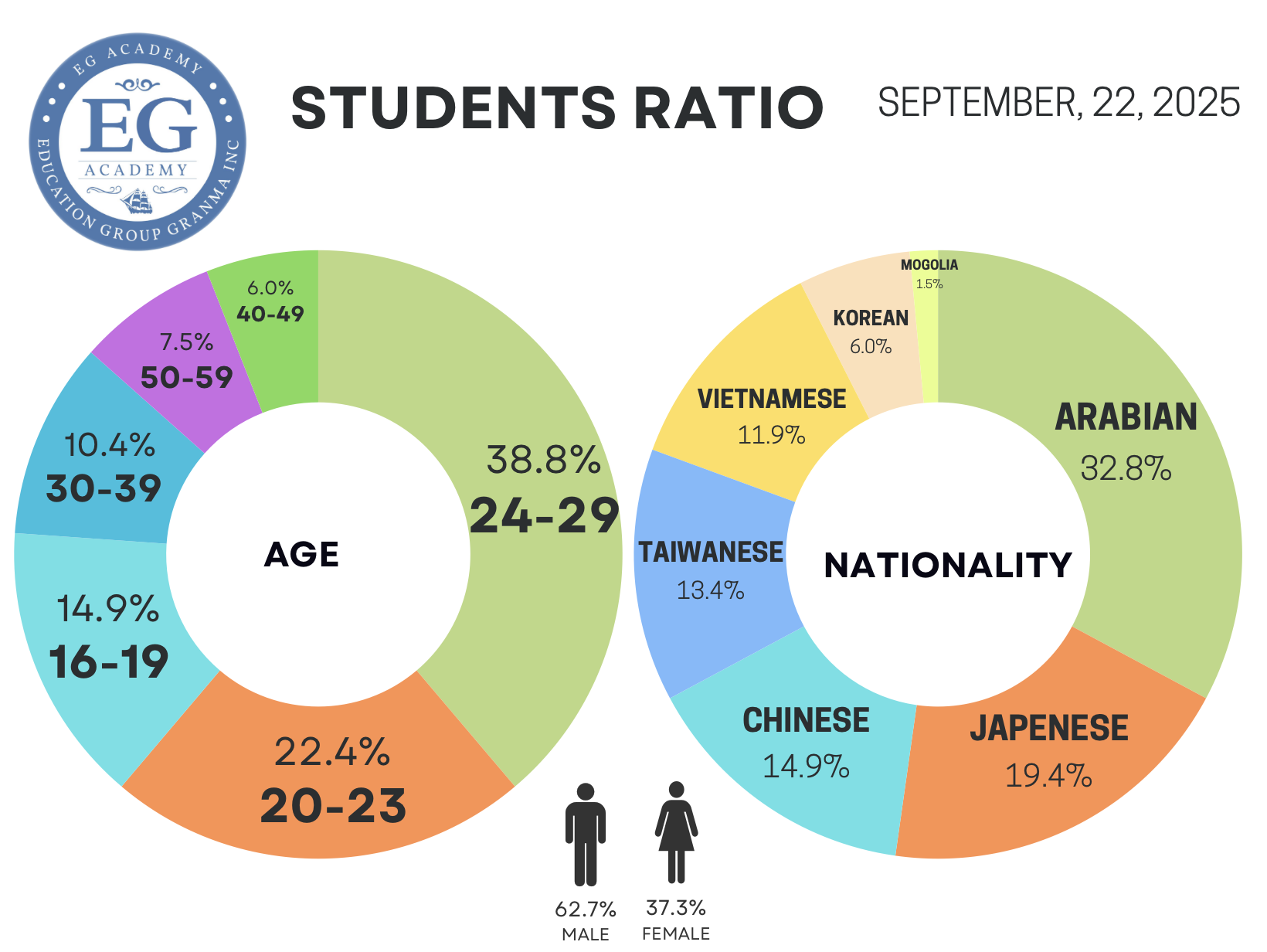 [新入生&卒業生] 【9/22】今週の国籍割合です!!